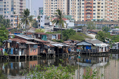 Aber in neun Jahren ändert sich eh vieles, wie ich feststelle. Nicht nur die Nachkommen sind gewachsen, auch die Häuser. Saigon hat sich eine respektable Hochhaussilhouette zugelegt, dafür wurden die Dörfer (oder auch Slums) jenseits des Flusses eingeebnet und das ganze wird sicher in Kürze auch hochhausbebaut. Mein erster Spaziergang in das Zentrum ernüchtert, irgendwie erscheint mir das hier alles zu sortiert, zu sauber. Trügen mich meine Erinnerungen oder bin ich nach fünf Indienreisen einfach zu blind in solchen Dingen? Ich bin mir nicht sicher, aber Saigon habe ich anders im Kopf. Im Zentrum wetteifern Armani, Gucci, Rolex uns Konsorten um die Gunst der "Shopper", la-ng-wei-lig... das ist wie in Dubai, New York, Berlin, Haste-nicht-gesehen. Den Vietnamesen sei es gegönnt, gar keine Frage, aber ich glaube, die kaufen hier nicht allzu oft ein. Als Einkaufsdestination für Besserverdienende hätte ich Vietnam bisher nicht beschrieben, heute scheint das aber so zu sein. Ach ja, auch die Fastfood-Ketten aller coleur sind mittlerweile an Bord und die Preise entsprechend. Der Verkehr ist mäßig, es ist Sonntag, aber eins schockt mich dann doch: ich gehe über eine seltsamer Weise existente Fußgängerampel (!) und die meisten Fahrzeuge bleiben stehen (!!!).